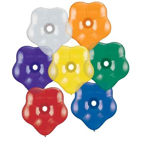 The Geo Blossom looks like flower but is all balloon! Jewel Assortment includes: Emerald Green, Sapphire Blue, Quartz Purple, Citrine Yellow, Ruby Red, Mandarin Orange and Diamond Clear.